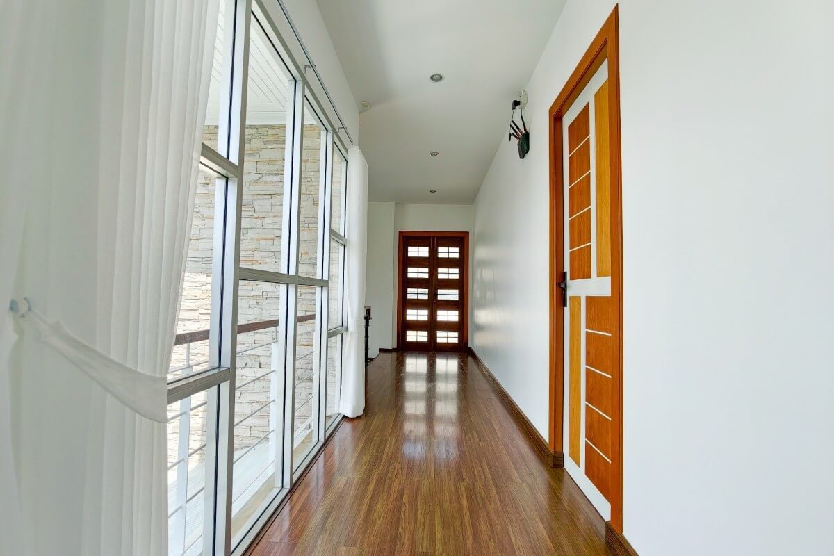 - Wide sliding glass doors