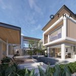 This ultra-luxurious pool villa is a non-estate/standalone structure located in a neighborhood of other upscale buildings and developments, with completion expected for the 4th quarter of 2026.